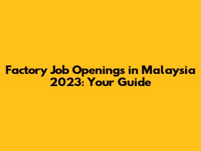 Factory Job Openings In Malaysia 2023: Your Guide