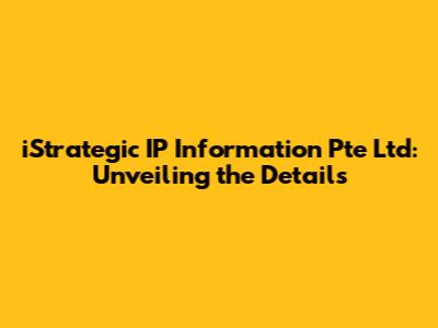 Let's dive into iStrategic IP Information Pte Ltd, a company that might have piqued your interest. This article aims to provide a comprehensive overview, offering insights and details that you might be looking for. Whether you're a potential client, a curious investor, or simply someone interested in the intellectual property landscape, we've got you covered. We'll explore what iStrategic IP Information Pte Ltd does, what services they offer, and how they fit into the broader business world. Understanding the nuances of a company like this requires a deep dive, and that's exactly what we're here to do. So, buckle up and get ready to explore the ins and outs of iStrategic IP Information Pte Ltd.