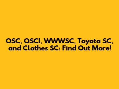 OSC, OSCI, WWWSC, Toyota SC, And Clothes SC: Find Out More!