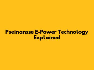 Pseinansse E-Power Technology Explained