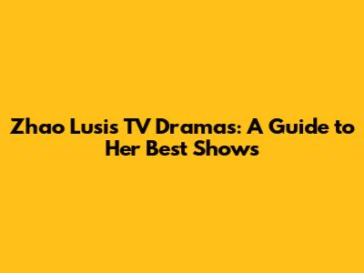 Zhao Lusi's Best Dramas: A Guide To Her TV Shows